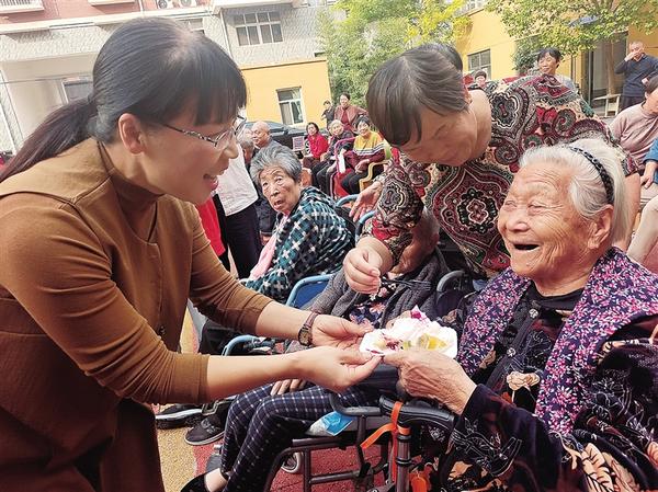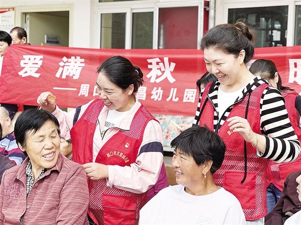 • 10月10日上午,周口市文昌幼兒園黨支部30余名黨員志愿者來到川匯區(qū)城南街道綜合養(yǎng)老中心,開展“愛滿金秋 情暖重陽”志愿服務(wù)活動。志愿者向老人送去慰問品,并表達(dá)對老年人的美好祝福。
