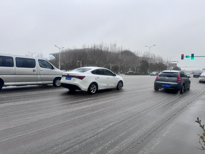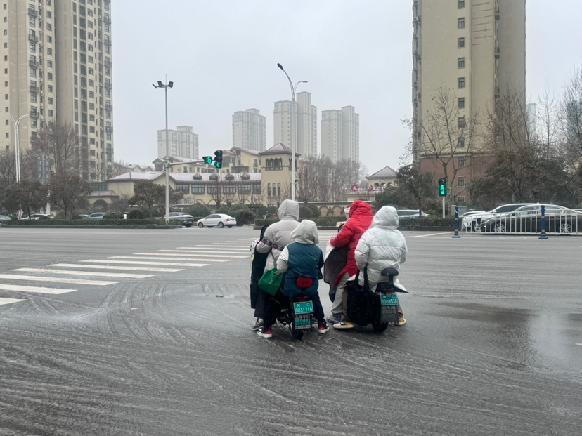 記者在周口大道看到,過往車輛紛紛拉開車距、緩慢通行,騎電動車的市民大多戴上了帽子、裹緊了身上的棉衣,過往行人撐著雨傘、頂著寒風匆匆趕路。