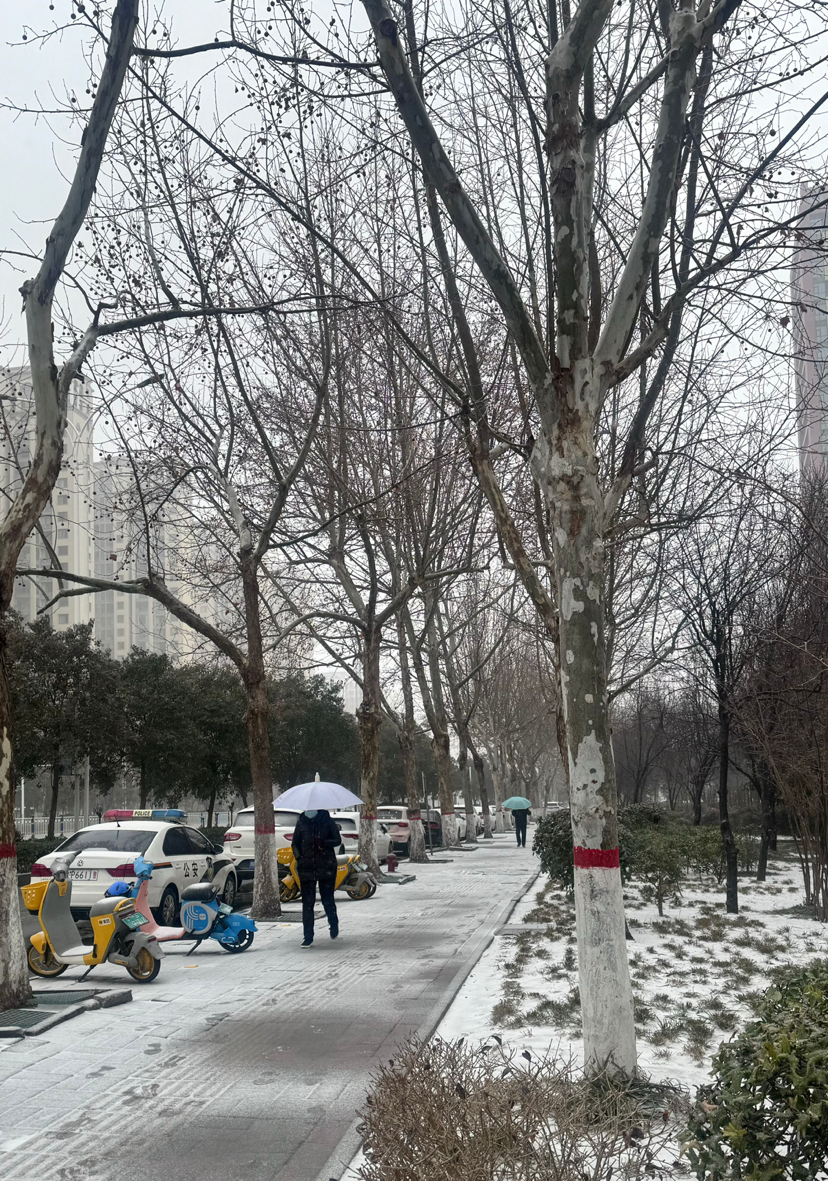 2月20日,我市中心城區(qū)受冷空氣影響氣溫驟降,甲辰龍年首場降雪悄然而至。天空中密密麻麻的白色的“雪粒兒”隨風飄揚,給大地鋪上了一層“白珍珠”。