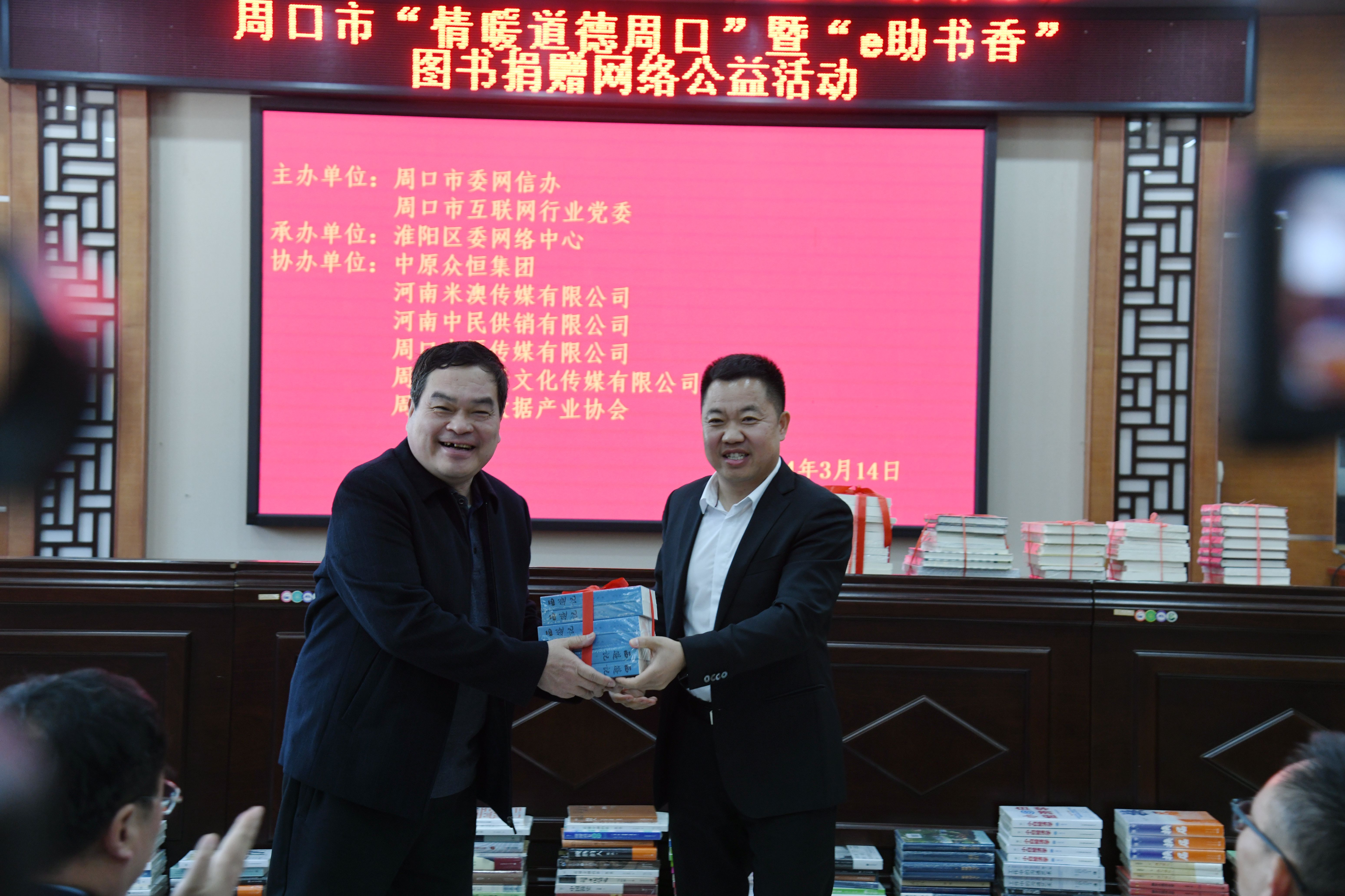 3月11日上午,第二屆周口伏羲書展在淮陽開幕。在開幕式的捐贈環(huán)節(jié),中原越秀實業(yè)有限公司董事長、越秀豐廚(周口)食品科技有限公司董事長李玉平向周口市中小學校捐贈圖書300萬元碼洋(價值300萬元約6萬冊圖書)。