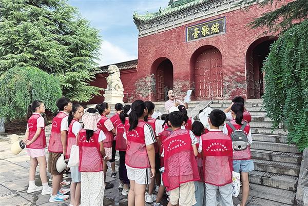 講解員為“小小講解員”集中培訓(xùn)。8月11日,太昊伏羲陵文化旅游區(qū)“小小講解員”培訓(xùn)活動(dòng)圓滿落幕。此次活動(dòng)中,淮陽區(qū)30余名青少年懷揣著對(duì)家鄉(xiāng)文化的熱愛,經(jīng)過為期一周的集中培訓(xùn),具備基本的講解能力,為傳承淮陽千年文脈注入了新鮮血液。記者 侯俊豫 通訊員 莊秋薇 攝