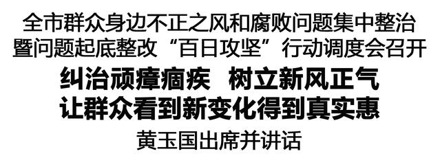本報訊(記者 王艷 李瑞才)2月27日,全市群眾身邊不正之風(fēng)和腐敗問題集中整治暨問題起底整改“百日攻堅”行動調(diào)度會召開,認真貫徹中央紀委國家監(jiān)委部署,落實全省群眾身邊不正之風(fēng)和腐敗問題集中整治總結(jié)暨2026年動員部署會議要求,調(diào)度“百日攻堅”行動,部署2026年工作,聚力攻堅、決戰(zhàn)決勝集中整治,不斷推動全面從嚴治黨向基層延伸,讓群眾看到新變化、得到真實惠。市委書記黃玉國出席并講話。