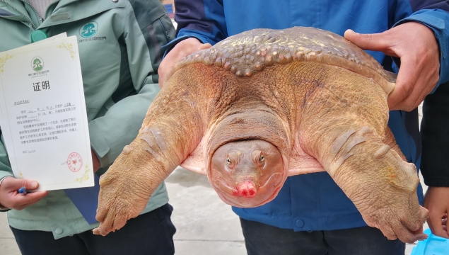 近日,鄲城縣自然資源局接到縣城市管理局公園管理辦公室工作人員救助電話,稱在人民公園岸邊又發(fā)現(xiàn)一只“大老鱉”。接到救助電話后,該局領(lǐng)導(dǎo)立即指派野生動植物保護(hù)和自然保護(hù)地管理股工作人員前往現(xiàn)場救助?!?a href="http://m.yijiaxihu.com/content/2021-03/23/content_925978.html" target="_blank" >[詳細(xì)]
