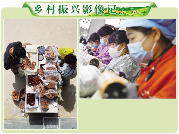 淮陽區(qū)葛店鄉(xiāng)回龍集村民依托傳統(tǒng)核桃雕刻技藝,創(chuàng)新打造“工廠+數(shù)字電商”融合發(fā)展模式,構(gòu)建起“原料加工—?jiǎng)?chuàng)意設(shè)計(jì)—雕刻生產(chǎn)—電商營(yíng)銷”全鏈條文玩產(chǎn)業(yè)體系,成為鄉(xiāng)村振興背景下電商賦能的典型案例。圖為4月1日村民在車間加工文玩核桃(上)及通過直播平臺(tái)銷售產(chǎn)品(左)的場(chǎng)景。