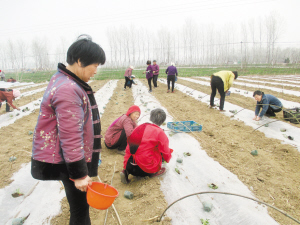 周營(yíng)鄉(xiāng)積極調(diào)整種植結(jié)構(gòu),因地制宜發(fā)展高效農(nóng)業(yè)種植,引導(dǎo)群眾搞小弓棚西瓜種植,畝均收入6000余元。4月2日,該鄉(xiāng)王寨村農(nóng)民正移栽西瓜苗。