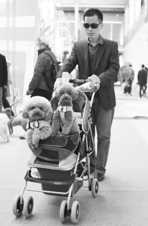 2015中國(guó)(北京)寵物文化節(jié)開幕      4月11日,兩只泰迪犬坐在兒童車?yán)?。?dāng)日,為期三天的2015中國(guó)(北京)寵物文化節(jié)在北京蟹島國(guó)際會(huì)展中心開幕。本屆寵物文化節(jié)包括“王牌寵物課堂”“第7屆WCF國(guó)際純種貓展”“中國(guó)純種犬——北京冠軍展”等多個(gè)主題活動(dòng)。 新華社發(fā)