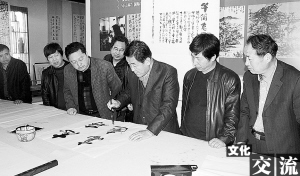 交流期間,兩地書法家飽蘸激情、揮毫潑墨,互相切磋技藝,在近兩個(gè)小時(shí)的時(shí)間里,創(chuàng)作出優(yōu)秀書法作品近百幅。參加交流活動(dòng)的書法家們表示,此次書法交流筆會(huì)的舉辦,為兩地書法家提供了一個(gè)切磋技藝、互相交流、互相促進(jìn)的平臺(tái)。他們將借此虛心學(xué)習(xí),取長補(bǔ)短,不斷提高書法藝術(shù)水平,努力提升作品質(zhì)量,以更好地豐富當(dāng)?shù)厝嗣袢罕姷奈幕睢?/P>