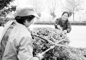 昨日,興旺路上兩名花工正在修剪道路隔離帶內的花木。春暖花開正是修葺花木的最佳時機,市園林部門組織人員對市區(qū)綠化植物進行適時修整,確保環(huán)境整潔有序。 (記者 沈湛 攝)