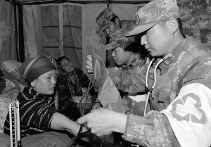 4月27日,西藏軍區(qū)日喀則軍分區(qū)部隊官兵在為尼泊爾受災群眾義診。