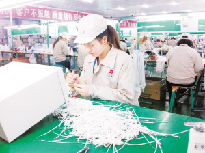 昨日,在三星手機耳機供應(yīng)商日立亞電子淮陽有限公司生產(chǎn)車間,工人們正在生產(chǎn)線上忙碌著?;搓柨h近年來積極實施“工業(yè)強縣、旅游突破、城鄉(xiāng)統(tǒng)籌、四化同步”發(fā)展戰(zhàn)略,不斷調(diào)整工業(yè)產(chǎn)業(yè)結(jié)構(gòu),增加企業(yè)科技含量,以提升產(chǎn)品質(zhì)量和市場競爭力,促進經(jīng)濟轉(zhuǎn)型升級。(記者 侯俊豫 攝)