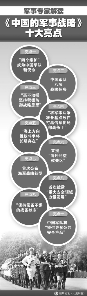 這是自1998年以來中國(guó)政府發(fā)表的第九部國(guó)防白皮書,也是首部專門闡述中國(guó)軍事戰(zhàn)略的白皮書。