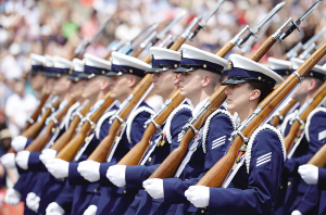 5月25日,在美國華盛頓憲法大道,儀仗隊士兵參加陣亡將士紀(jì)念日游行。
