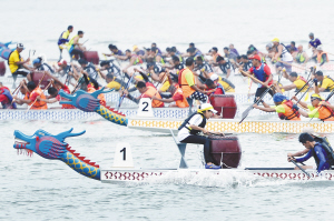 6月14日,選手們?cè)诒荣愔小?月13日,馬來西亞沙巴州首府哥打基納巴盧舉行第二屆沙華堂國(guó)際龍舟賽,迎接即將到來的中華民族傳統(tǒng)節(jié)日——端午節(jié)。