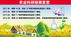 目前,全市農(nóng)業(yè)科研系統(tǒng)包括1個(gè)市級(jí)農(nóng)科院和5個(gè)縣級(jí)農(nóng)科所。全市農(nóng)科系統(tǒng)現(xiàn)有干部職工347名,其中專業(yè)技術(shù)人員161名,其中有研究員16名,副研究員29名,博士、碩士22名,享受國(guó)務(wù)院特殊津貼專家15名,省優(yōu)秀專家3名,省級(jí)學(xué)術(shù)技術(shù)帶頭人6名,市級(jí)優(yōu)秀專業(yè)技術(shù)人才24名。從以上數(shù)據(jù)可以看出,我市農(nóng)業(yè)科研人員中,專家和學(xué)科帶頭人數(shù)少,急缺博士、碩士等高層次農(nóng)業(yè)科技人才。即使在這樣的情況下,周口農(nóng)業(yè)科研人員也沒(méi)有懈怠,而是加倍付出,用自己的智慧和汗水,培育出了多個(gè)小麥和大豆新品種,獲得了一項(xiàng)又一項(xiàng)科技成果獎(jiǎng)。五年來(lái),市農(nóng)科院獲得的河南省科技進(jìn)步獎(jiǎng)數(shù)量穩(wěn)居河南省地市農(nóng)科院前列,主要是集中在小麥育種和大豆育種上。這主要是與我市小麥、大豆育種居國(guó)內(nèi)領(lǐng)先水平?jīng)Q定的。特別是小麥育種已成為全國(guó)優(yōu)勢(shì)學(xué)科,相繼育成30多個(gè)小麥新品種,其中12個(gè)通過(guò)國(guó)家審定,13個(gè)通過(guò)河南省審定,創(chuàng)育了享譽(yù)全國(guó)的“周麥”品牌,市場(chǎng)占有率高、美譽(yù)度好。2015年周麥系列品種在黃淮麥區(qū)累計(jì)推廣面積近3000萬(wàn)畝,其中在河南省推廣2500萬(wàn)畝,占全省小麥種植面積的28%,占周口小麥種植面積的75%,新增經(jīng)濟(jì)效益20多億元,為全省、全市小麥連年增產(chǎn)做出了突出貢獻(xiàn)。