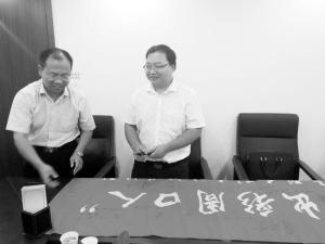 龐少磊在出彩周口人旗幟上簽名。