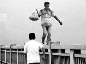 本報綜合消息 一位年過半百的老伯,竟然踩在大橋的欄桿上,閑庭信步(下圖)……這并非是武俠片中的片段,而是9月3日7時,掌上拍客張先生在重慶石板坡長江大橋拍攝到的一幕,張先生說,老伯在欄桿上行走的速度不輸給常人在大道上步行的速度。同時在網(wǎng)上,也有很多網(wǎng)友稱目擊到了這一幕,并將當時的所見所聞發(fā)在了網(wǎng)上,很多網(wǎng)友都稱老伯為“輕功哥”。