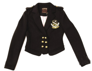 同樣是鐘情排鈕,但跟軍裝風格不同,學院派的紐扣大多位于衣領的下方,并不耀武揚威地宣示自己的地位,更搶眼的應該是外套上的大翻領設計。本年度流行窄領設計,讓學院風格更內(nèi)斂一些。大熱的色彩除了有標準的寶藍色之外,還有黑、紅雙色,胸口的徽章設計會讓學生味道來得更濃烈。