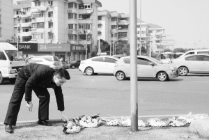 3月12日,一名交警下班后來到茆盛泉執(zhí)法時(shí)不幸殉職的路口獻(xiàn)花。